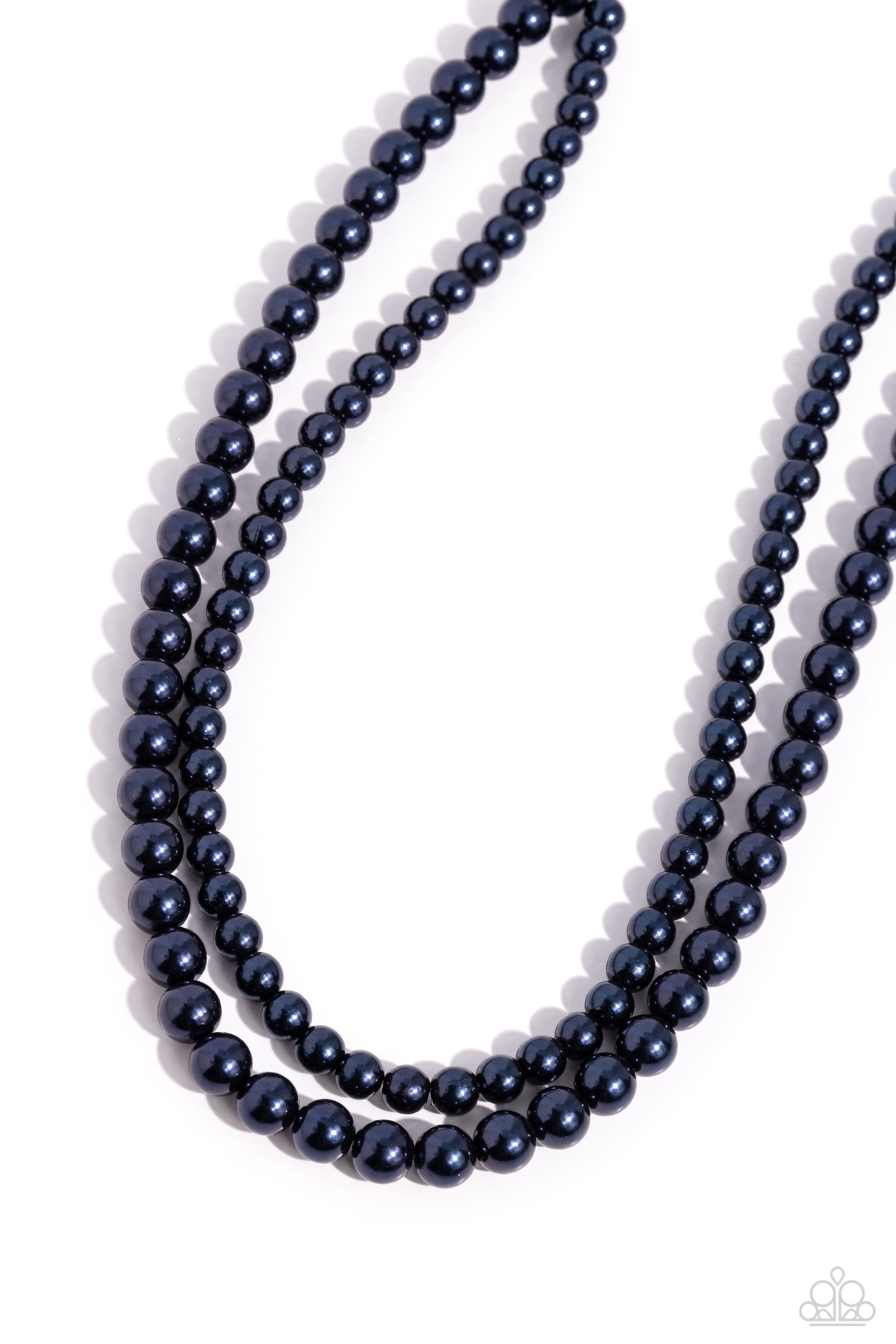 Two strands of classic blue pearls are strung along invisible wires below the collar. Each strand slightly varies in size, adding a modern twist to the timeless pearl palette. Features an adjustable clasp closure.